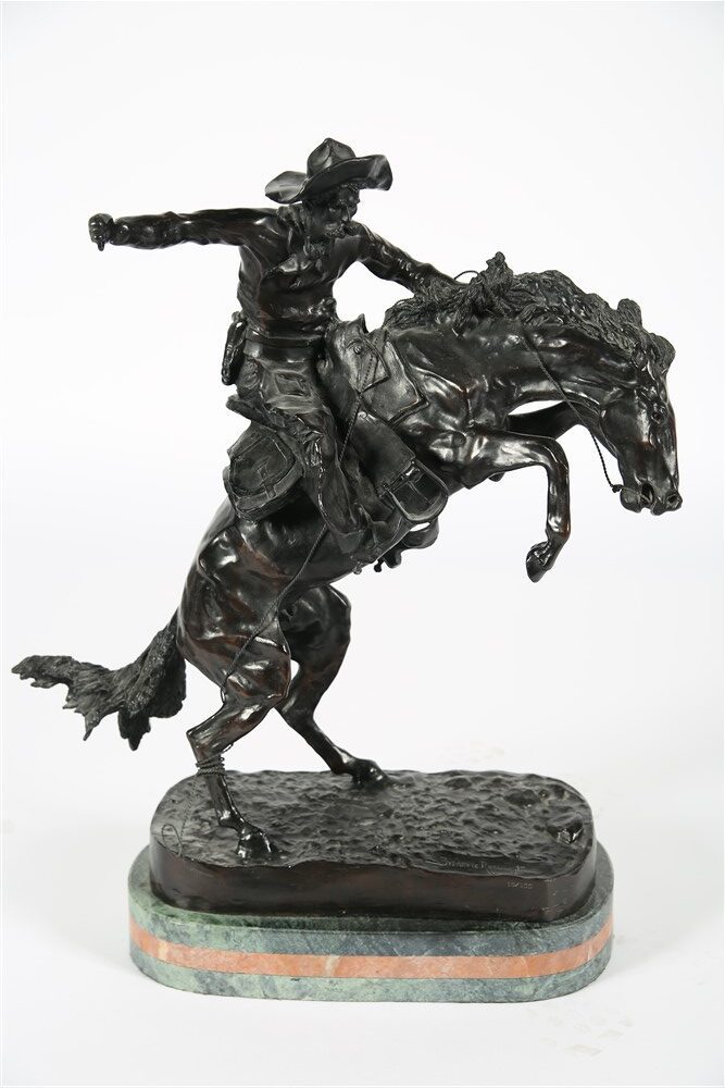 Several bronzes after Frederic Remington will be on offer, including “Old Dragoons”, “Rattlesnake”, “Outlaw”, and more alongside other bronze works by artists such as Martin Duque, Barbedienne, and anonymous artists.